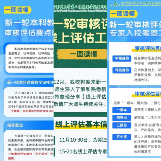同时,为保证审核评估工作扎实开展,学院制定了评估工作的“路线图”——《南方医科大学第二临床医学院本科教育教学审核评估工作方案》,针对附属医院的教学工作特点,系统准备迎评工作。